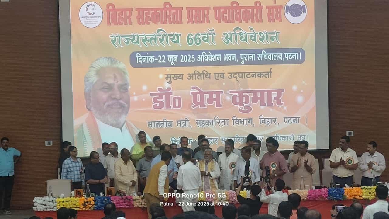 आज डॉ प्रेम कुमार, माननीय मंत्री, सहकारिता विभाग ने पटना के अधिवेशन भवन परिसर में बिहार राज्य सहकारिता प्रसार पदाधिकारी संघ के 66 वे अधिवेशन का उद्घाटन किया। इस अवसर पर संघ के कार्यकारिणी का निर्वाचन करवाया गया। कार्यक्रम में राज्य भर से करीब 750 सहकारिता प्रसार पदाधिकारियों ने भाग लिया। संघ ने माननीय मन्त्री महोदय के समक्ष अपनी समस्याओं को भी रखा। इस अवसर पर माननीय मंत्री ने कहा कि सहकारिता प्रसार पदाधिकारी सहकारिता विभाग की रीढ़ है। जमीनीस्तर पर सभी कार्यो, योजनाओं का निष्पादन इन्ही के द्वारा किया जाता है इसलिए इनका दायित्व अधिक है। साथ ही, विभाग की भी यह जिम्मेदारी है कि इनकी समस्यायें से अवगत होकर उनका निदान करे। उन्होंने कहा कि उनके विभिन्न ज़िलों के भ्रमण के दौरान सहकारिता प्रसार पदाधिकारियों से मुलाक़ात की जाती है एवम उनके समस्याओं पर संज्ञान लिया जाता है। इस संवर्ग के लेवल 8 तथा 9 को राजपत्रित करने, उच्चतर प्रभार दिये जाने इत्यादि मामले पर विभाग में कार्रवाई किया जा रहा है।
