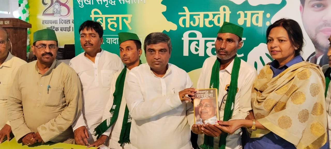 जनता दल यू के प्रदेश सचिव सह मुस्लिम तेली संगठन के अध्यक्ष मो0 हारूण, मो0 मुख्तार अपने समर्थकों के साथ प्रधान महासचिव श्री रणविजय साहू के समक्ष राष्ट्रीय जनता दल की सदस्यता ग्रहण की