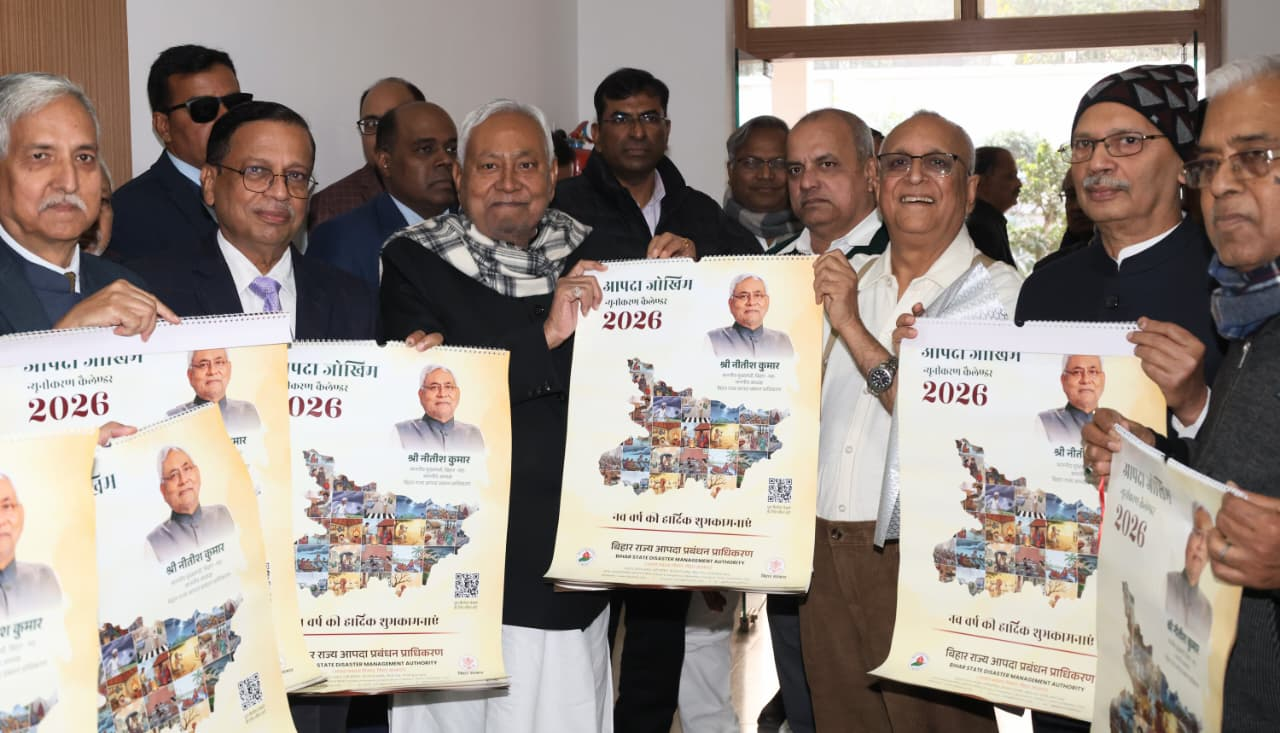 पटना, 1 जनवरी। माननीय मुख्यमंत्री, बिहार-सह-माननीय अध्यक्ष, बिहार राज्य आपदा प्रबंधन प्राधिकरण श्री नीतीश कुमार ने 01 जनवरी को यहां 1, अन्ने मार्ग स्थित संकल्प कक्ष में प्राधिकरण के आपदा जोखिम न्यूनीकरण कैलेंडर-2026 का विमोचन किया।